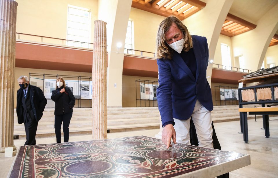 Dario Del Bufalo is an Italian expert on ancient stone and marble. In 2013, Del Bufalo was in New York City doing a book signing and lecture on his book Porphyry. As Del Bufalo recounted to 60 Minutes correspondent Anderson Cooper, “there was a lady with a young guy with a strange hat that came to the table, and he told her, ‘What a beautiful book. Oh Helen, look, that’s your mosaic.”