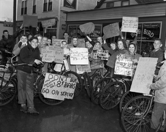 Over 3,000 children pledged to boycott chocolate bars until they returned to their original price. It’s reported this caused their sale to drop 80 percent, with Winnipeg candy stores reporting a day where they didn’t sell any. The children’s efforts were supported by adult-led community organizations, which printed protest signs, brought snacks, and stood with the young protestors.