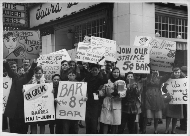 On April 29, 1947, the protests spread to nearby Victoria, where an estimated 200 children stormed the province’s legislature, shutting down business. Soon, the protests spread east, occurring in Calgary, Edmonton, Regina, Winnipeg, Ottawa, Toronto, Quebec City, Montreal and various cities in the Maritimes. At the protest in Ottawa, 60 students marched on Parliament Hill, chanting, “We’ll eat worms before we eat 8¢ chocolate bars.”