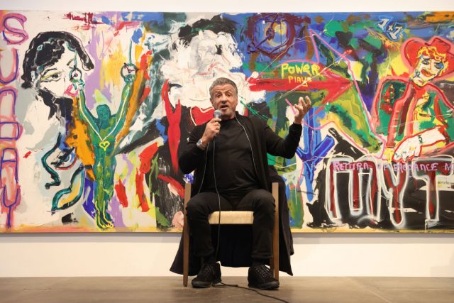Did you know Sylvester Stallone uses oil paints, as well as bullets, to get his point across? The Hollywood Reporter previously wrote that a retrospective opened in the city of Hagen, Germany. Retrospective? Believe it or not, Sly has been setting up his easel for half a century! Maybe the gap between a Hollywood action star and an art gallery isn’t so wide. After all, he was “inspired by the experimental work of” action painters like Jackson Pollack and Willem de Kooning.