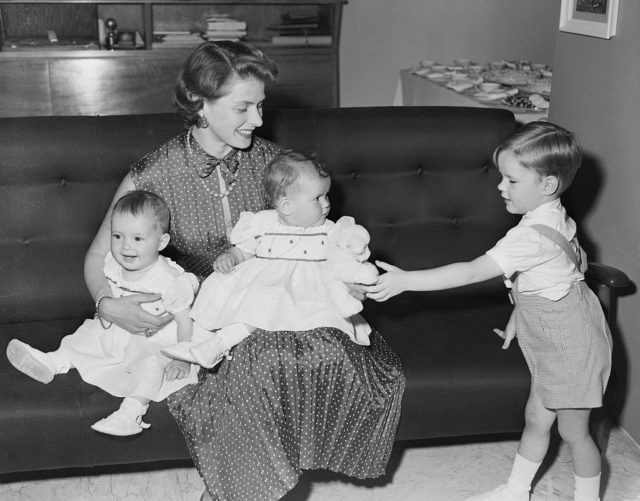 Swedish actress Ingrid Bergman is at home with her twin daughters and young son in 1953. The Casablanca star was celebrating the first birthday of her twin daughters Isotta and Isabella with her husband, Roberto Rossellini. Her son, Robertino, is playing with one of his sisters.