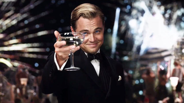 That picture of Leonardo Di Caprio smiling and holding up a martini glass in a toast has been used in memes all over the world. The gleam in his eye and his charming, confident smile really do sum up Jay Gatsby.