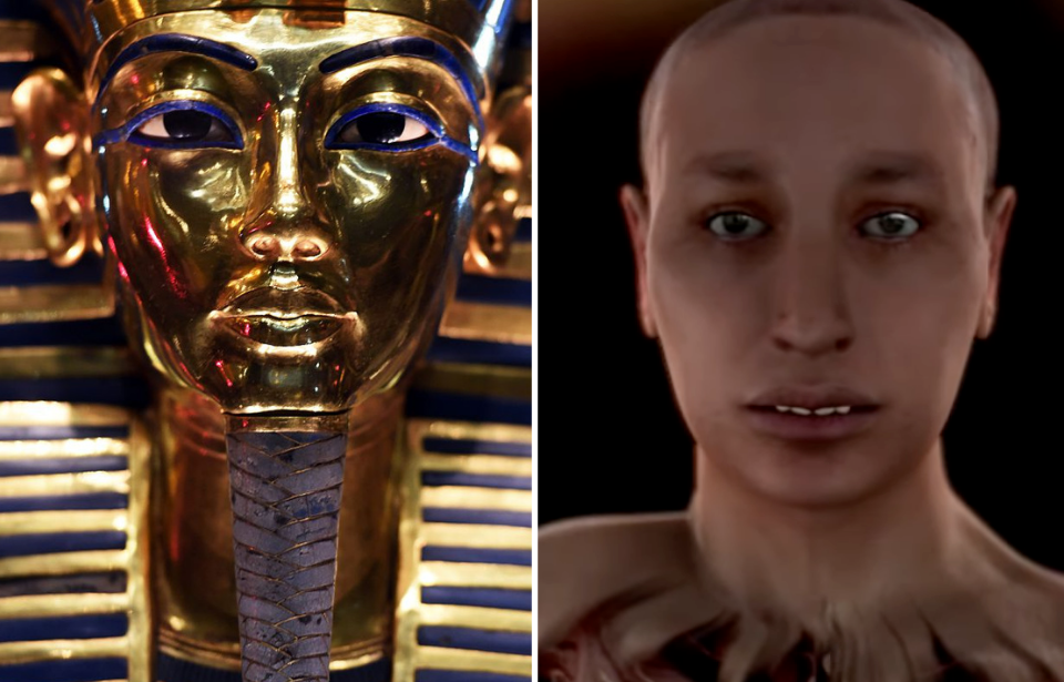 King Tutankhamen is arguably the best-known mummy in the entire world, and yet remarkably little is known about King Tut himself. King Tut’s famous burial mask shows an idealized version of the Egyptian pharaoh. The CGI reconstruction of King Tut is much different than his idealized burial mask.