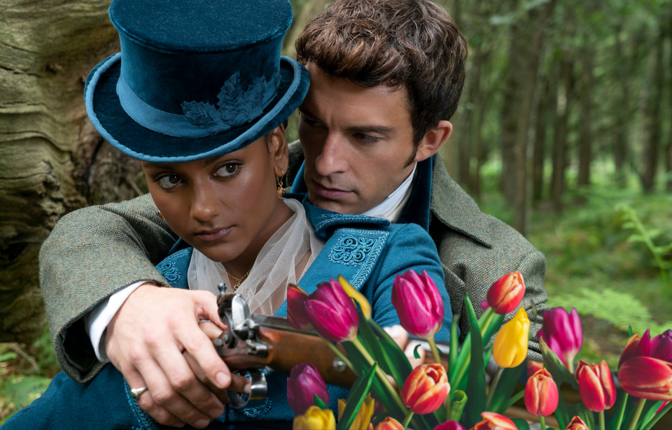 The Netflix show took its inspiration from the book The Viscount Who Loved Me, by Julia Quinn. In this scene in the book, Anthony (who is courting Kate’s younger sister, Edwina), hands Kate a tulip, telling her “you should have a tulip… It isn’t right that Edwina receives all the flowers.”