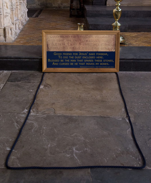 It is speculated that Shakespeare wrote the “curse” himself, but new evidence suggests this might not be the case. Shakespeare was buried near four of his family members, including the grave of his wife Anne Hathaway, but his ledger stone is the only one that does not have a name written on it. Did he decide on using the four lines he wrote as an identifier instead?