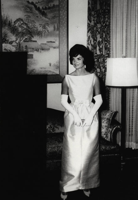 After graduating from George Washington University with a French Literature degree and a previously-acquired junior editorship at Vogue, Jackie grew fond of French fashion and designers. Unfortunately, a strong love of French designers did not mix well with the patriotic requirements of a political wife, so Jackie reached out to fashion editor Diana Vreeland to help source American designers who could recreate Parisian fashion.