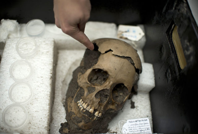 However, experts note that these skulls might have rested atop poles rather than being strung on them. In ancient cultures including the Aztecs, Tzompantli racks were typically created by casting a hole through the skull and stringing it up on wooden poles.