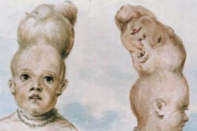 In 1783, a boy in Bengal was born with two heads. The second head was upside down with the neck that pointed straight up. The second head had a fully functioning brain, and would whisper random stuff to the other brain. The two-headed baby attracted great deal of attention and earned the family a fair amount of money.