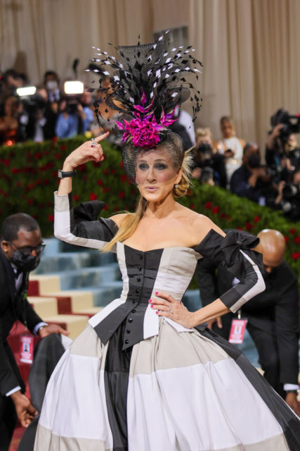 Finally – a hat worthy of the Gilded Age! Sex and the City star Sarah Jessica Parker made her triumphant return to the Met Gala Red Carpet this year in a custom Christopher John Rogers gown and a towering Philp Treacy headpiece. Even Met curator Andrew Bolton was wowed by how on-theme SJP appeared: “This dress was really exquisite and pretty much fit the period of time.” After all, nobody knows New York-style quite like Carrie Bradshaw herself!