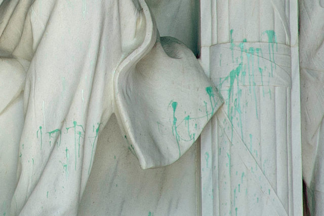 As with many other prominent statues and monuments, the Lincoln Memorial has seen its fair share of vandalism over the years. This includes “permanent damage” caused by a vandal who carved letters into the marble in 2017, as well as other instances that were cleaned up.