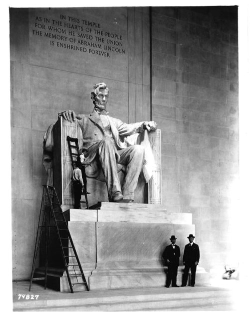 The statue’s official title is “Abraham Lincoln” and it was carved by the Piccirilli brothers, an Italian family of renowned marble sculptors and carvers. Daniel Chester French designed the colossal sculpture, which was constructed from 1914–22. Chester paid special attention to Lincoln’s “expressive hands” when designing the tribute, and used his own as models.