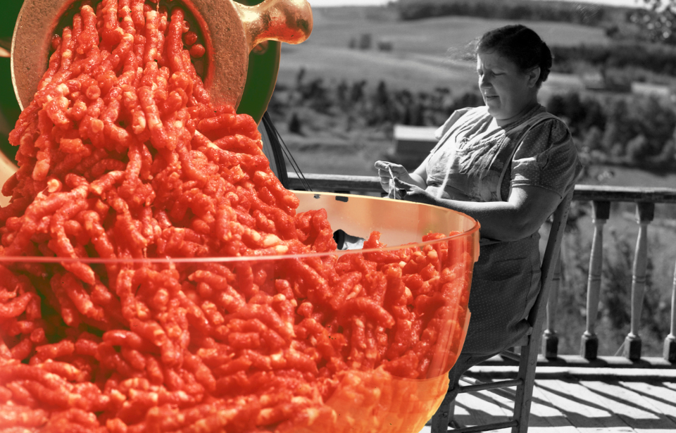 That morning, Mrs. Crouch was sitting on her porch making soap. She had heard some thumps of things hitting the ground in front of her, and when she looked up, she saw chunks of meat raining from the sky. One moment the sky was clear and blue, the next, these chunks of meat were falling to the ground or landing on her fence. She said that the meat looked like beef and fell all around her like large snowflakes. She was absolutely shocked, and notified the press.