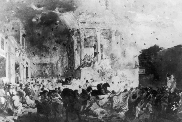 Pompeii was an ancient Roman city situated near the Bay of Naples. Located only five miles away was Mount Vesuvius, an active volcano. Initially, this didn’t affect the lives of Pompeians and the city became a place of refuge for some of Rome’s richest citizens. The city contained many elegant houses and villas, as well as taverns and open-air markets.