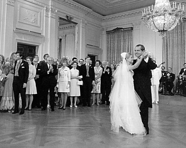 President Richard Nixon and First Lady Patricia Nixon’s daughter Tricia married Edward Finch Cox on June 12, 1971, in the 16th ceremony to take place at the White House. Tricia was the first bride to be married at the Rose Garden, which was redesigned by President John F. Kennedy in 1961 to allow space for large gatherings like weddings.