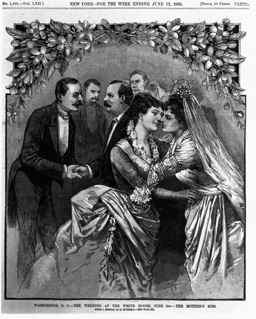 Two hundred and fifty guests were in attendance as President Grant walked Nellie down the aisle in a stunning lace gown reportedly worth thousands. The bride was described as “probably the most attractive of all the young [women] who have ever lived in the White House.” Unfortunately, the newlyweds did not have a very blissful marriage.