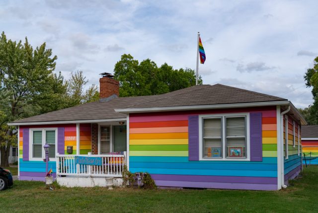 The Equality House is located right across the street from the Westboro Baptist Church, which is known for its anti-LGBTQ+ demonstrations. In October, 2012, a nonprofit group known as Planting Peace bought a home for sale right across from the church and painted the house the colors of the rainbow flag to show support for LGBTQ+ rights.