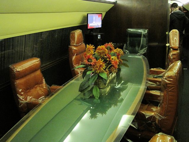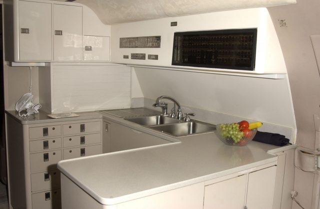 The interior of the Corvair 880, dubbed the Lisa Marie after Elvis’s daughter, featured a forward lounge with club and divan seating, a conference room, a dining area with its own refreshment center, a bedroom with a queen-sized bed, and a private bathroom with a gold sink and faucet. The jet can now be toured at Graceland.
