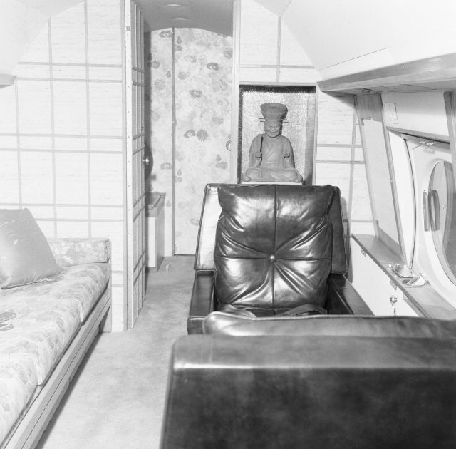 In 1967, Sinatra sold the Learjet and purchased a Gulfstream II (pictured above). The interior of the plane was fitted with dark paneling, with settees and club chairs in leather.