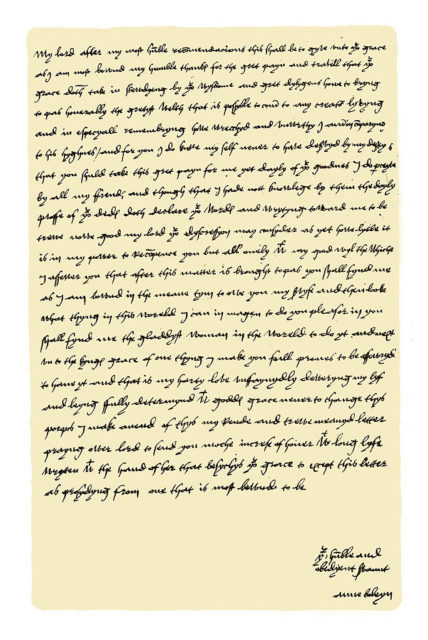 Of the books that survive today, only three bear Anne’s signed inscriptions. Hever Castle, Anne’s childhood home, has two of these books, while the third is held by the British Library. The book which she is thought to have taken to her execution bears the touching inscription: “remember me when you do pray, that hope dothe led from day to day.”