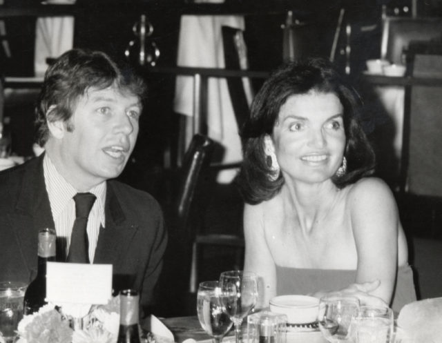 Jackie Kennedy Onassis and Peter Hamill during the 6th Annual RFK Tennis Tournament Party at Rainbow Room. (Photo Credit: Ron Galella / Ron Galella Collection / Getty Images)