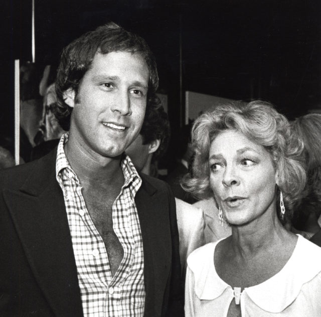 Chevy Chase and Lauren Bacall during 6th Annual RFK Tennis Tournament Party at Rainbow Room. (Photo Credit: Ron Galella / Ron Galella Collection / Getty Images)