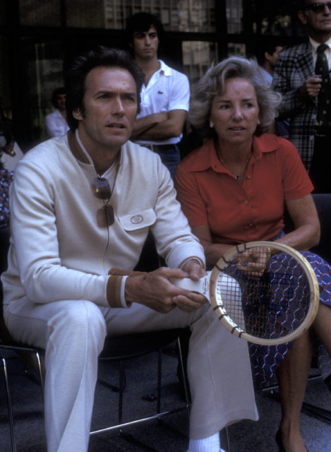 Actor Clint Eastwood and Ethel Kennedy attend Robert F. Kennedy Celebrity Tennis Tournament on August 27, 1977. (Photo Credit: Ron Galella / Ron Galella Collection / Getty Images)