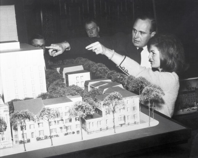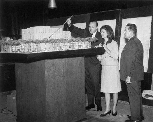 Jackie Kennedy first met Warnecke in 1962 when he was commissioned to help save the historical building around Lafayette Square in Washington, DC. He remained acquainted with the Kennedys all the way up until JFK’s assassination on November 22, 1963. Following the tragedy, Warnecke was hired by Kennedy to design her late husband’s memorial at Arlington National Cemetery.