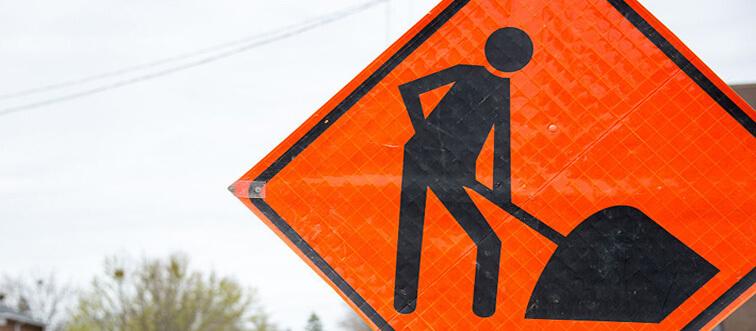 Orange signs on the road mean that there is construction ahead. This particular sign means that there are construction workers on the side of the road and to be extra cautious.