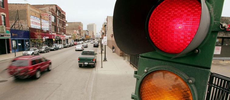 - Slowly come to a stop at the intersection; if you can’t safely stop, cautiously proceed through the intersection