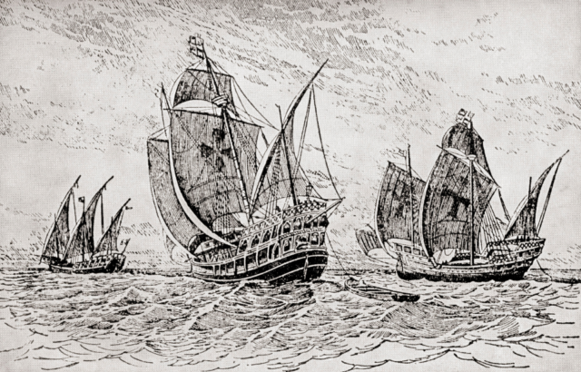 Santa Maria served as Christopher Columbus’ flagship during his historic voyage to the Americas in 1492. On August 3rd, Columbus embarked on his journey from Palos de la Frontera, Spain. Two other vessels accompanied Santa Maria on the expedition, Niña and the Pinta, both smaller caravels.
