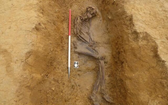 In 2017, MOLA Headland Infrastructure was doing excavations during a project to improve the A14 road between Cambridge and Huntingdon. While digging near the village of Offord Cluny in Cambridgeshire, they discovered the complete skeletal remains of a man. He was found in a trackway ditch, buried alone and with no other personal possessions around.