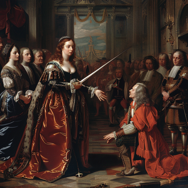 Sir Isaac Newton is Knighted By Queen Anne of England