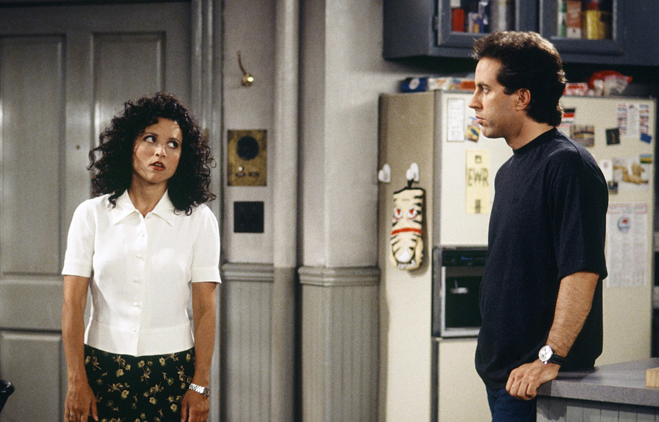 In the episode, Elaine (played by Julia Louis-Dreyfus) expresses worry about the increasing crime being seen in the city. Because of this, she decides to purchase a firearm. She discusses this decision with Jerry (played by Jerry Seinfeld) and George (played by Jason Alexander) at the Monk’s Café, with Jerry arguing against the idea. His character says, “Elaine, if you buy a gun, you’re just perpetuating the violence! You’re as bad as the criminal!”