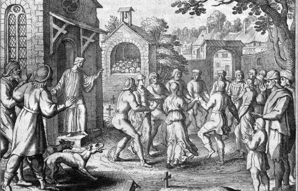Dancing mania, also known as choreomania, was a phenomenon where people danced uncontrollably. It occurred in several parts of Europe from the 13th to the 17th centuries. People who were affected danced for hours, days, or even weeks. They couldn’t stop themselves, and they sometimes danced until they were seriously injured or even died.