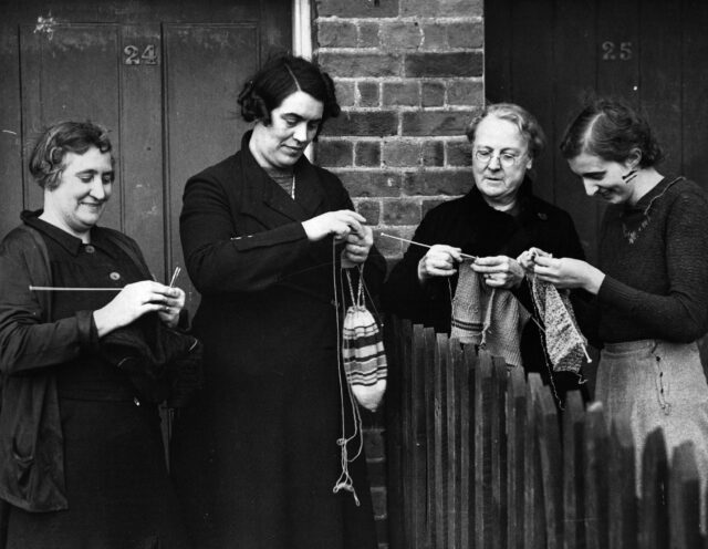 A group of women in knitting warm clothing, circa 1940. (Photo Credit: Fox Photos / Getty Images)