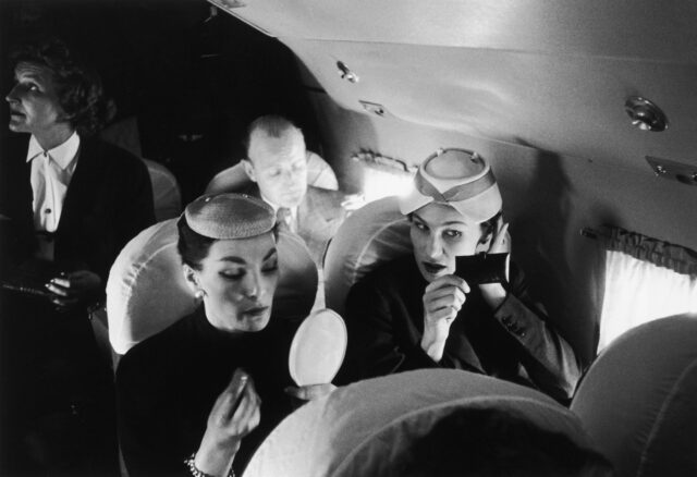 Here we have two models, one of them frequent Dior collaborator Lucie “Lucky” Daophars, applying their makeup during their flight to Scotland. They were among the many who participated in the fashion shows.