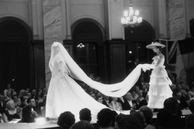 Above you can see just one of the many amazing outfits showcased on the catwalk at the 1955 Christian Dior fashion shows. We don’t know what we love more, the dress itself or the veil. Together, they’re perfection!