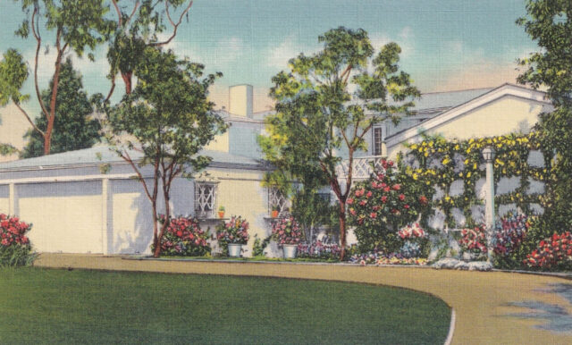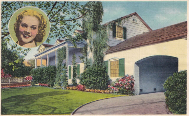 If there was one thing we’d bring back from the early-to-mid-20th century, it would be postcards with celebrity houses on them. It’s not that we’re nosey (although we are), it’s just interesting to see how the other half live. We recently stumbled upon several vintage postcards from the 1920s-80s, all of which feature the residences of some of the era’s most famous stars, and we thought we’d share them with you.