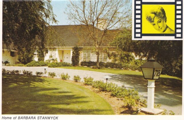Vintage postcard featuring the home of actor Barbara Stanwyck.