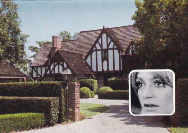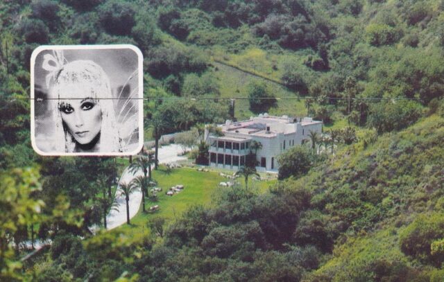 Vintage postcard featuring the mansion once owned by Goldie Hawn.
