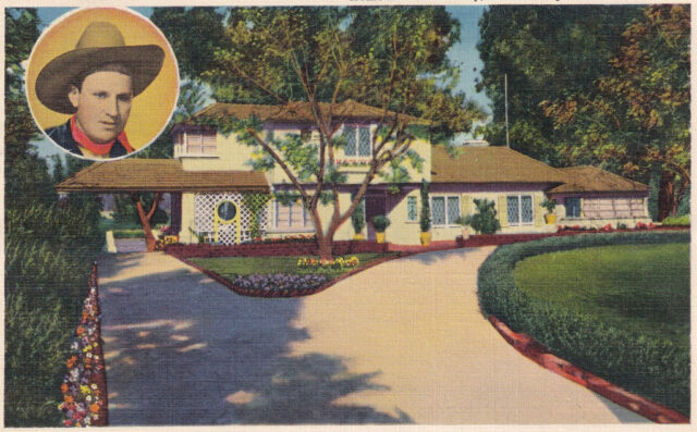 Vintage postcard featuring the grand estate of “Singing Cowboy” Gene Autry.