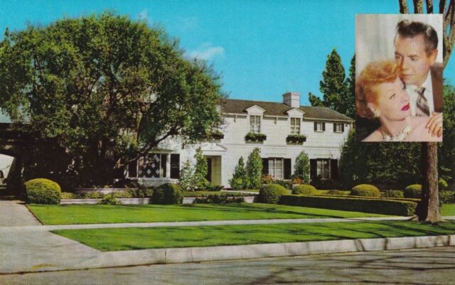 Vintage postcard featuring the mansion owned by one of Hollywood’s original power couples, Lucille Ball and Desi Arnaz.