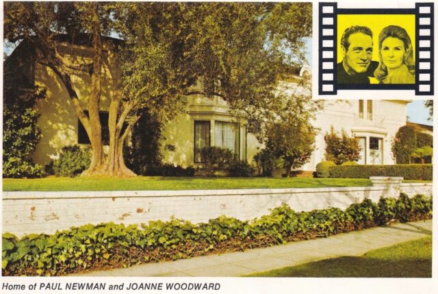 Paul Newman and Joanne Woodward were one of Hollywood’s most beloved couples, and this vintage postcard shows the mansion they once lived in.