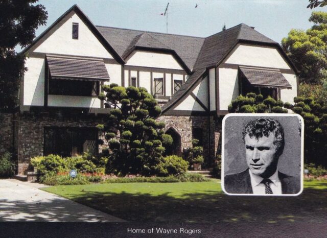 Vintage postcard featuring the mansion once owned by M*A*S*H (1972-83) star, Wayne Rogers.