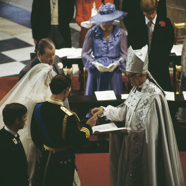 After the long walk down the aisle at St. Paul’s Cathedral, Diana stood alongside her husband-to-be while Robert Runcie spoke to them and attendees about their union.