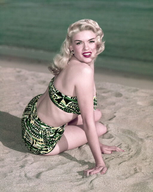 Mansfield’s stardom reached its peak in the late 1950s and early ’60s. She became a household name, known for her voluptuous figure, platinum blonde hair and playful persona. Her movies, including Kiss Them for Me (1957) and The Sheriff of Fractured Jaw (1958), showcased her versatility as an actor.
