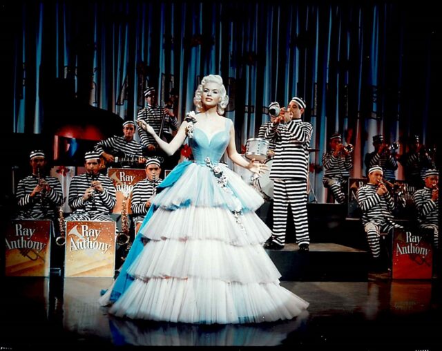 Mansfield’s breakthrough came in 1955, when she signed a contract with Warner Bros. and landed the role of Rita Marlowe in the Broadway hit, Will Success Spoil Rock Hunter? – a role that catapulted her to fame. Her rise continued with roles in films like The Girl Can’t Help It (1956) and The Wayward Bus (1957), and she eventually signed to Twentieth-Century Fox.