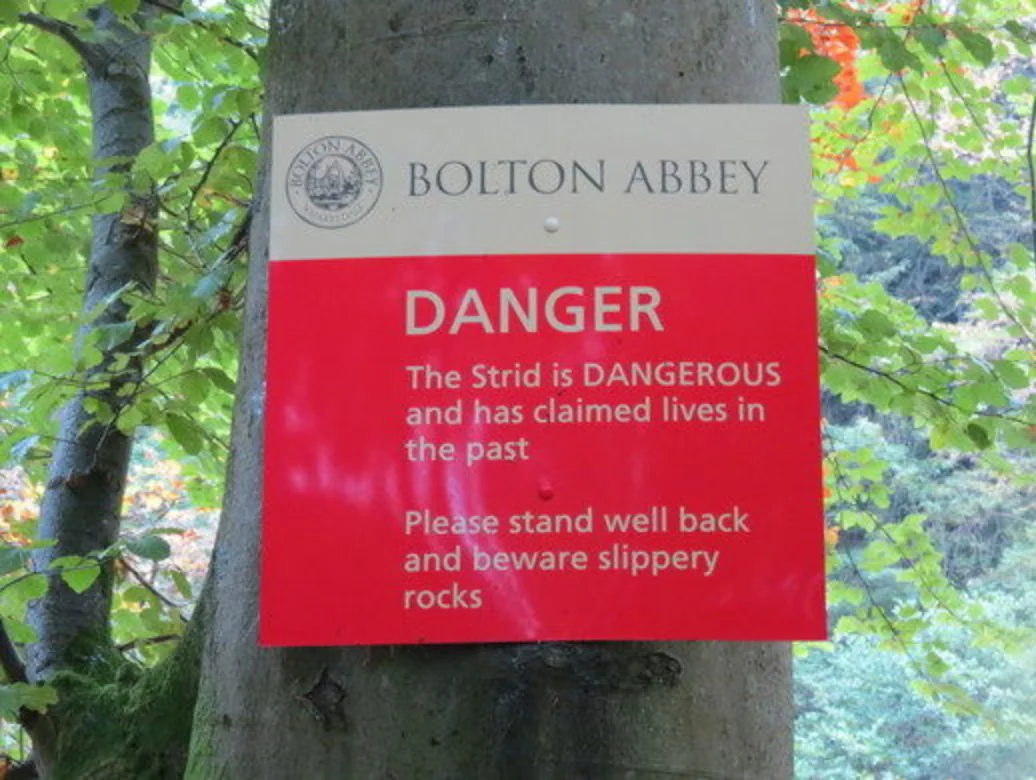 According to local legend, 100 percent of those who fell into the Bolton Strid died, with many getting sucked under and never coming back up. Another legend states that when this happens, people have seen a spectral white horse trotting along the water where the victim died. This is what earned the river a very ominous sign, reading, “The Strid is Dangerous and Has Claimed Lives in the Past. Please Stand Well Back and Beware Slippery Rocks.”