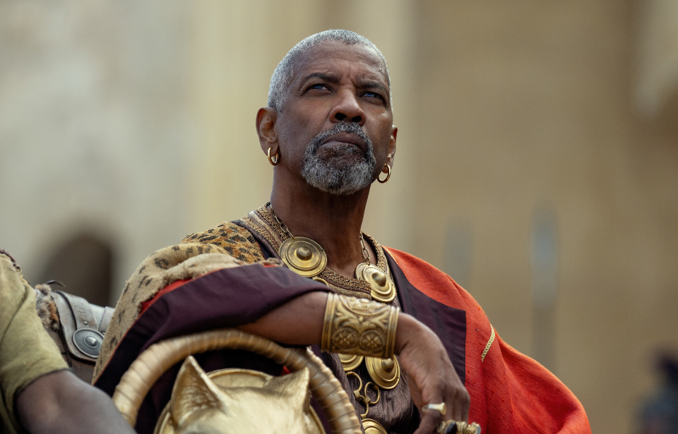 Denzel Washington’s character is described as a “Roman businessman who has amassed enormous wealth thanks to his acumen and brutal ambition.” However, there’s more to him than that. In the script for Gladiator II, it’s mentioned that Macrinus has been in relationships with men in the past, a fact most scholars agree was present in ancient Roman, although often kept private.