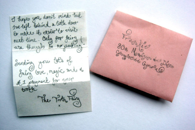 “I really screwed myself by writing a note from the tooth fairy the first time,” Gina remembers. Once you’ve written a note for one tooth, you have to write one for every tooth. “It was the bane of our existence. My daughter never forgot!”
